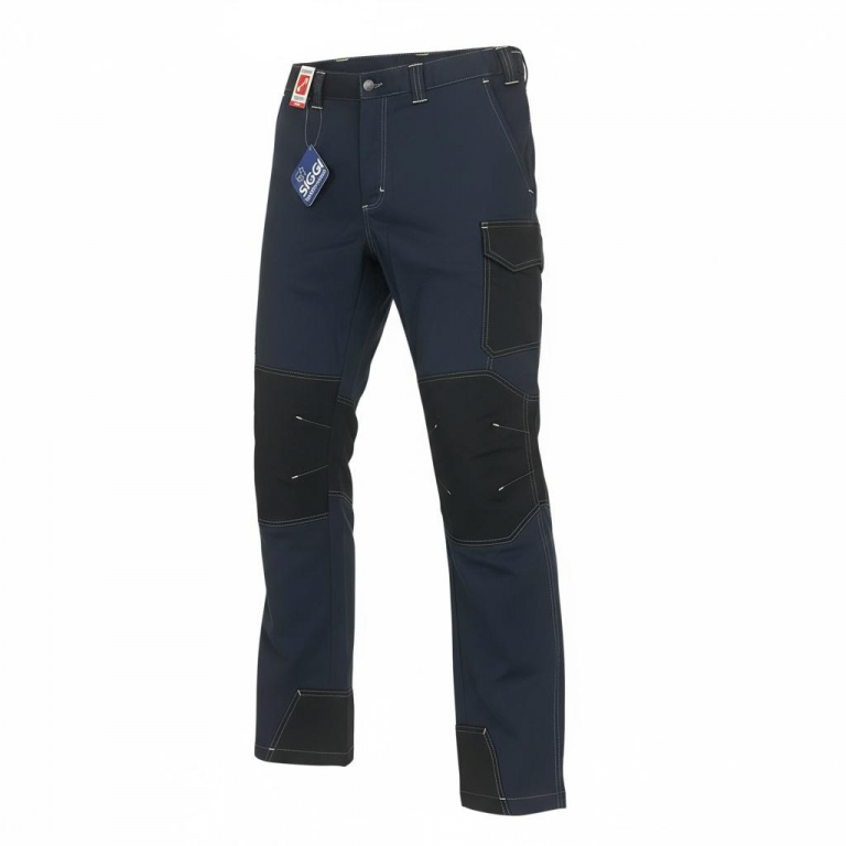 Pantalone dalla linea slim in tessuto elasticizzato, abbottonatura con zip e bottone chiodo, passanti in vita e elastico ai fianchi, dettagli in contrasto, tasche porta attrezzi, tessuto rinforzato a fondo gamba, cuciture e travette a contrasto, ginocchiere sagomate, tasca porta martello, portametro e porta cellulare.Il capo è certificato OEKO-TEX® STANDARD 100.